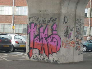 This Graffiti is all from an alleyway behind South Parade, which links the Ormeau Road with Ravenhill Road in Belfast. Most of it is faded so it looks like it hasn't been used much in years.